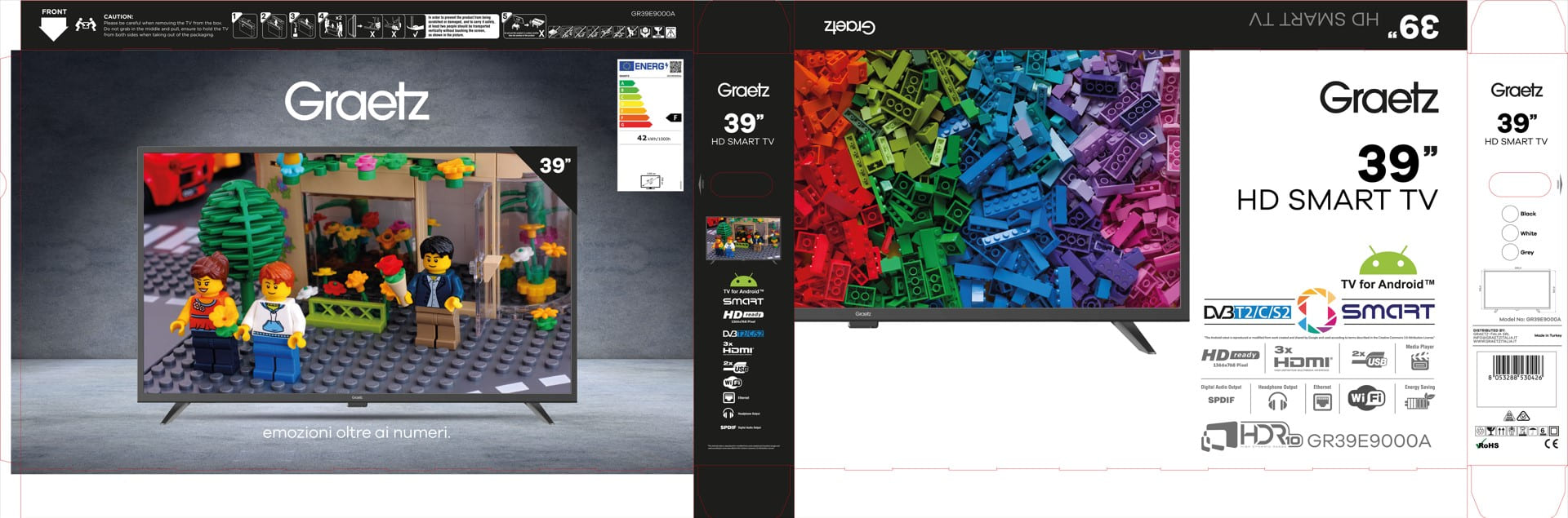 La serie E9000A combina un design semplice ma elegante, una qualità d’immagine in alta risoluzione e il più avanzato sistema TV Android (Smart TV). Il modello Graetz GR39E9000A è il giusto compromesso tra semplicità, buona qualità e una tecnologia all’avanguardia. La straordinaria risoluzione HD offre una maggiore luminosità e dettagli accurati, grazie anche all’ HDR10, per godere di tutti i tuoi contenuti preferiti. Inoltre, il sistema Dolby Digital ti renderà parte integrante anche nei suoni.